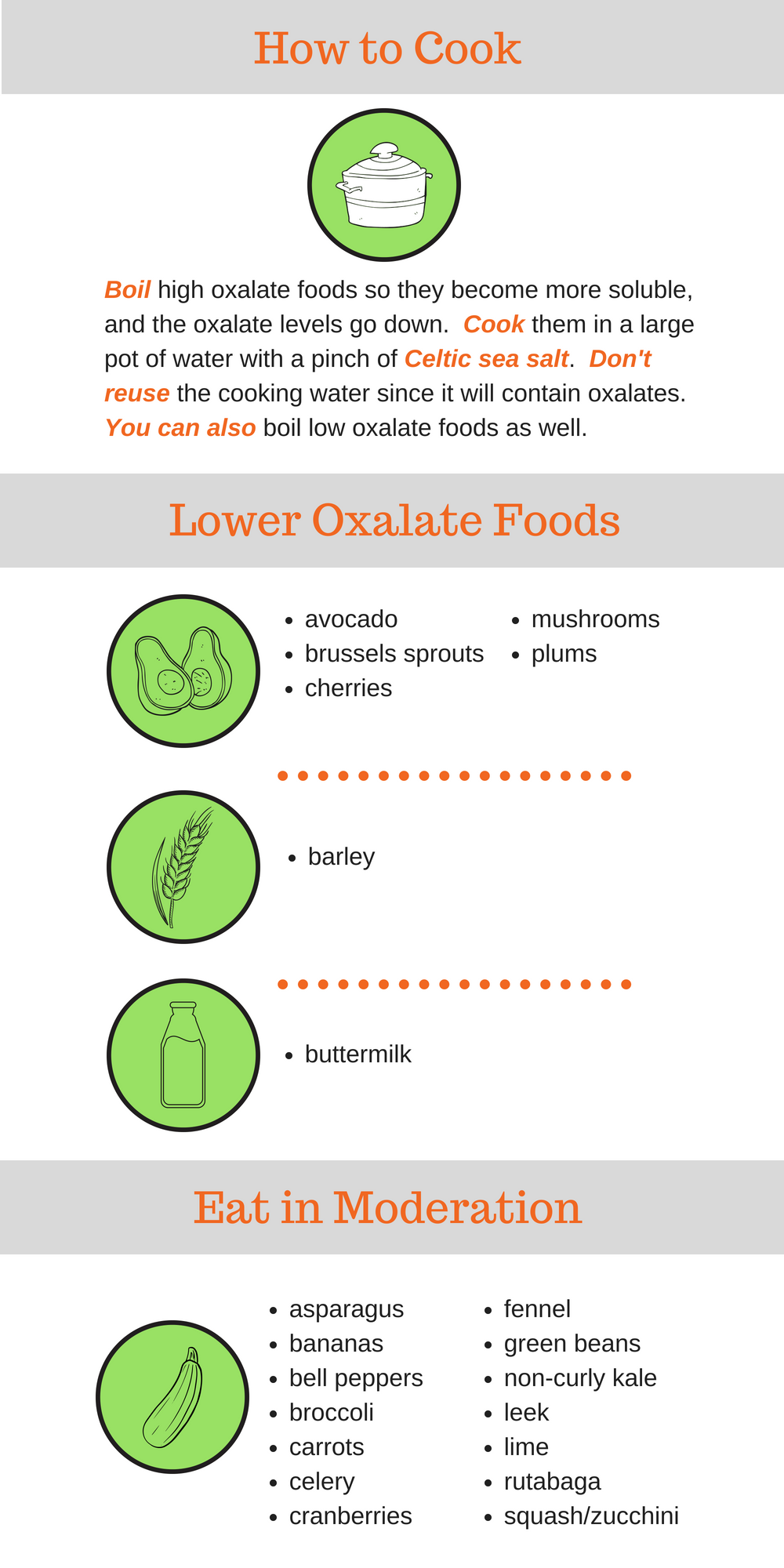 And if you decide to boil any of these foods, including high-oxalate foods, they become more soluble and the oxalate levels go down. So, be sure to boil your high-oxalate foods. After boiling high-oxalate foods in a large pot of water with a pinch of Celtic sea salt, remember to dump the cooking water since it contains the oxalates boiled out of the food.